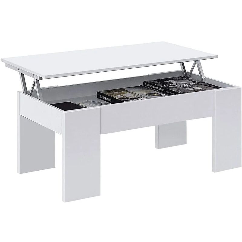 Table basse avec Plateau Relevable Table de salon Moderne avec Etagère de Rangement Compartiment Caché pour Salon Bureau 98 x 50 x 42 cm Blanc