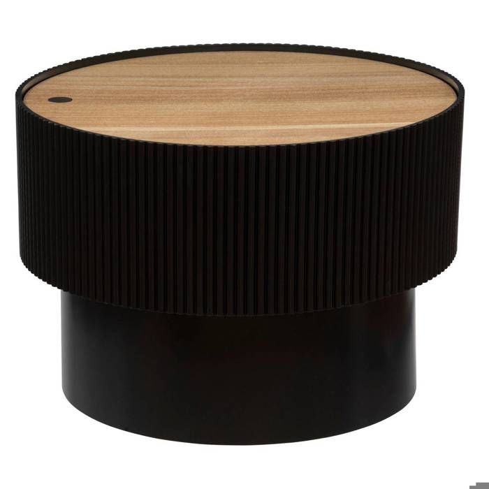 Macabane Table basse ronde 80x80cm en rotin noir plateau amovible