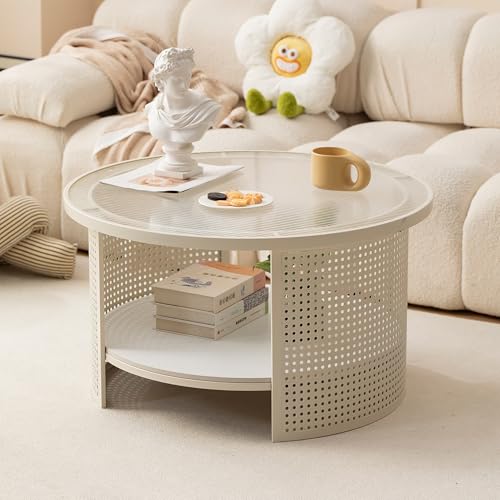 Macabane Table basse ronde 80x80cm en rotin beige plateau amovible