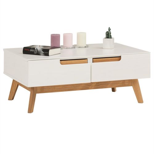 Vente Unique Table basse avec 2 tiroirs en MDF Naturel clair et blanc FELIX