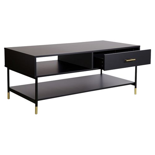 Vente Unique Table basse avec 2 tiroirs et 2 niches en MDF et métal Effet marbre noir et Doré CIEMILA de Pascal Morabito