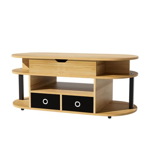 Vente Unique Table basse avec 2 tiroirs en MDF et acier Naturel clair et Noir TUMACO