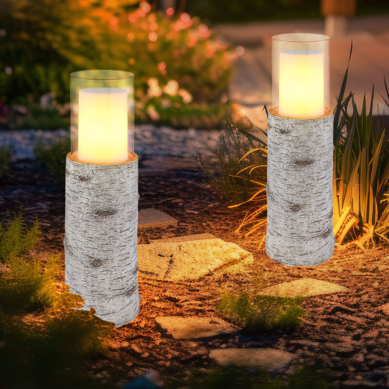 Lampe solaire led d'extérieur, lampe solaire de jardin, lampe de table, lampe de terrasse, aspect bois, verre plastique blanc, batterie incluse 6-8h,