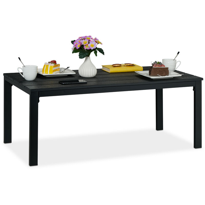 Relaxdays Table de jardin rectangulaire, aspect bois, jardin, balcon, terrasse, H x L x P: 39 x 98 x 48 cm, noir