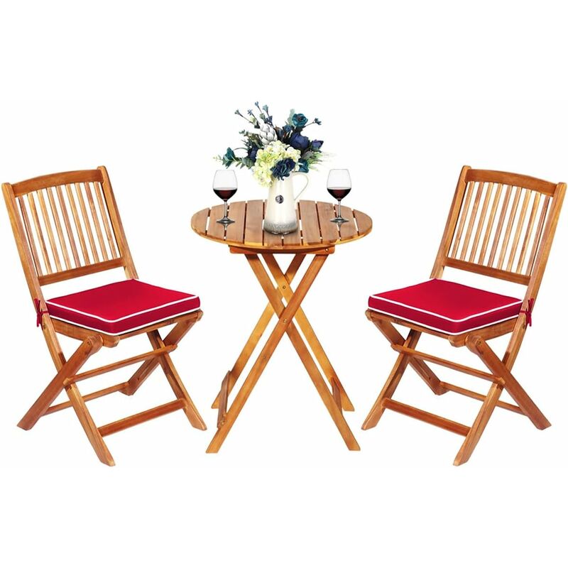 GOPLUS 3PCs Salon de Jardin Pliant-2 Chaises+1 Table en Bois d'Acacia-Table et Chaise d'Extérieur pour Jardin et Terrasse