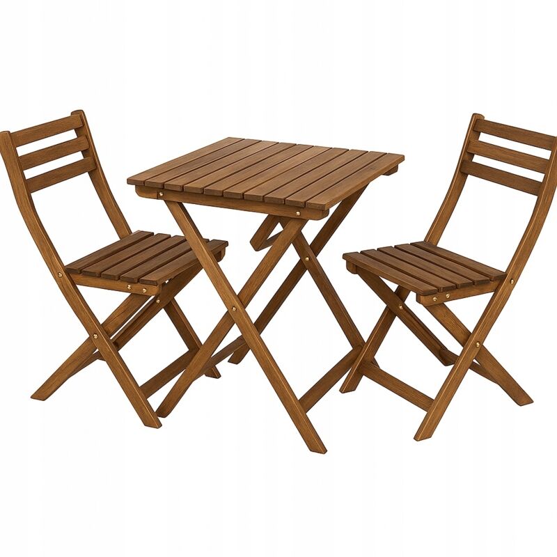 Ensemble de Bistrot en Bois d'Acacia Certifié Pliant Meuble de Jardin Terrasse Balcon Table et 2 Chaises Marron Rivarotta