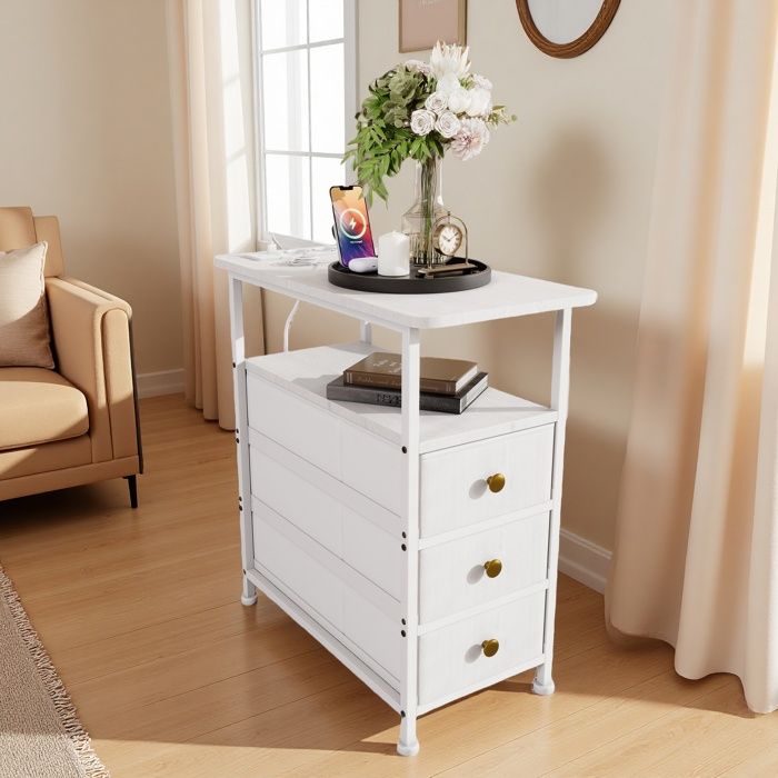 Table dAppoint Bout de Canape avec CA et Ports USB à lIntérieur Table dAppoint Canapé avec Tiroir de Rangement blanc