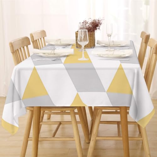 FFFASFY Nappe Carrée 140x140 cm, Nappe Imperméable Anti Tache, Géométrique Nappe Gris Jaune Lavable en Machine, Linge de Table pour Table Basse, Salle à Manger et Jardin Extérieur