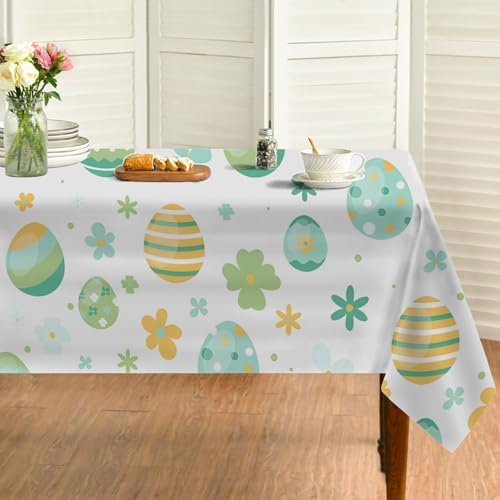 Nappe Carrée Vert Menthe 140x140 cm, Œuf de Pâques Floral Œuf à Pois,Nappe Anti Tache Impermeable, Pour Mariage, Décoration de Table, Jardin, Fête, Anniversaire, Noël, Conférences, Foires A211