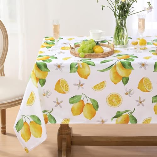 Aozhiswe Nappe de Table Citron Nappe Carrée 140x140 cm Table Cloth Fruits Imprimée Impermeable Anti-Taches Nappes Protection Cuisine Exterieur Jardin Fête a-543