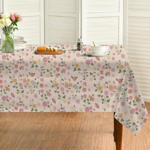 Aozhiswe Nappe de Table Fleurs Printanières Nappe Carrée 140x140 cm Table Cloth Fleurs de Cerisier Imprimée Impermeable Anti-Taches Nappes Protection Cuisine Exterieur Jardin Fête a-9383
