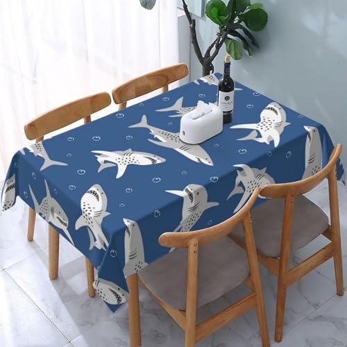 Aozhiswe Nappe de Table Requin Nappe Carrée 140x140 cm Table Cloth Bleu Imprimée Impermeable Anti-Taches Nappes Protection Cuisine Exterieur Jardin Fête a-3893