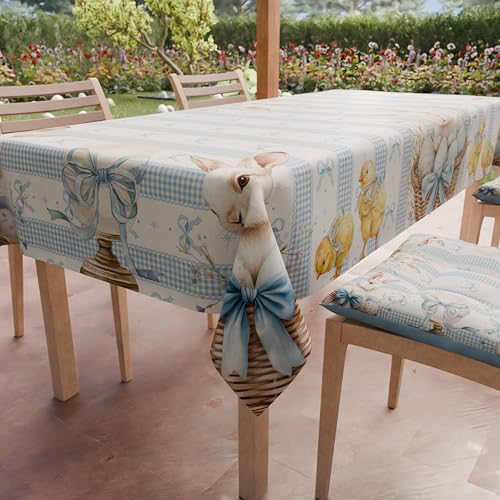 PETTI Artigiani Italiani - Nappe de Paques Anti-Taches carrée 140 x 140 cm, pour Table de Cuisine, White Bunny 29, X4 Places, 140x140 cm, 100% Made in Italy