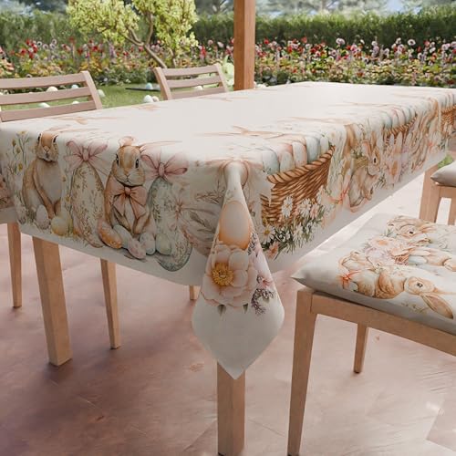 Nappe Carrée Rose Timide 140x140 cm, Lapin de Pâques Panier à Œufs Papillon,Nappe Anti Tache Impermeable, Pour Mariage, Décoration de Table, Jardin, Fête, Anniversaire, Conférences, Foires A210