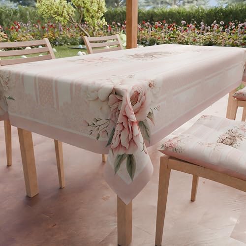 phonxia Nappe Carrée Rose Timide 140x140 cm, Rose Vintage Bouquet Floral Discret,Nappe Anti Tache Impermeable, pour Mariage, Décoration de Table, Jardin, Fête, Anniversaire, Noël, Conférences, Foires