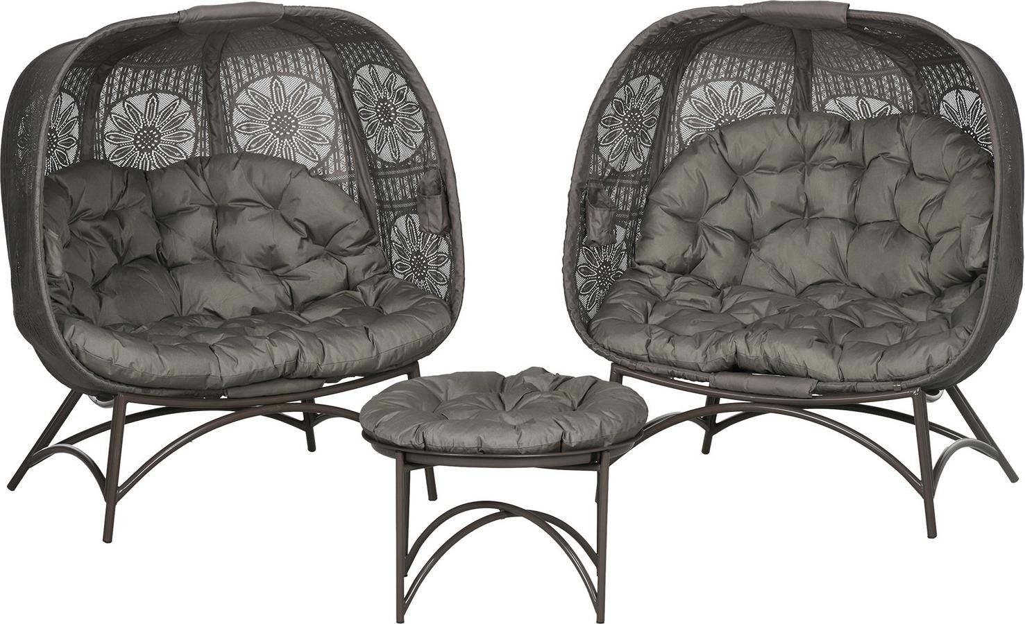 3 Pièces. Ensemble De Chaises De Jardin, Chaise En Osier Avec Panier De Siège Pliable, Table Basse, Coussin, Chaise Longue Pour Terrasse, Balcon, Acier, Sable