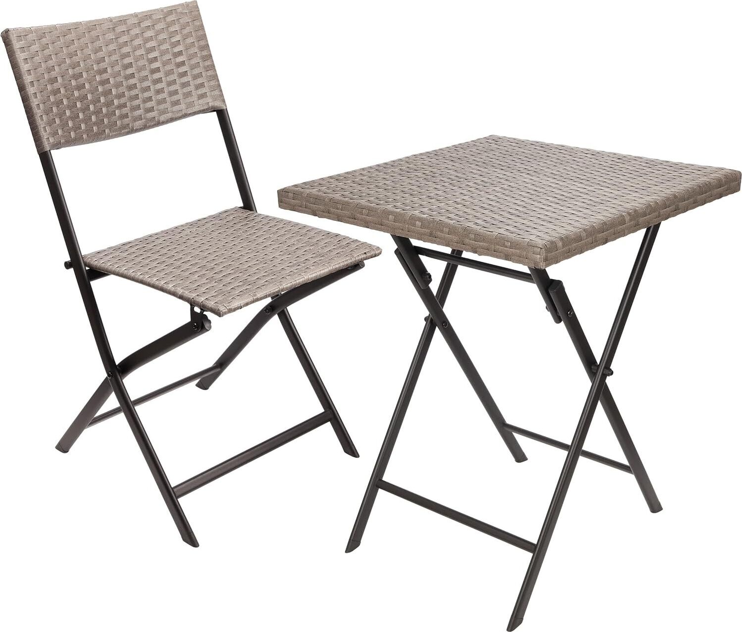 TecTake® Salon de Jardin Extérieur en Poly Rotin pour 2 Personnes - Ensemble Chaise et Table Pliables - Mobilier pour Amenagement Balcon Terrasse Veranda