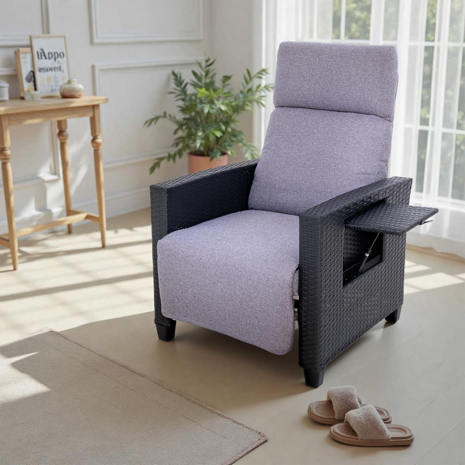 BELONID TY02 Fauteuil de jardin avec fonction chaise longue réglable et table latérale, pour l'intérieur, le balcon et le jardin (réglage assisté)