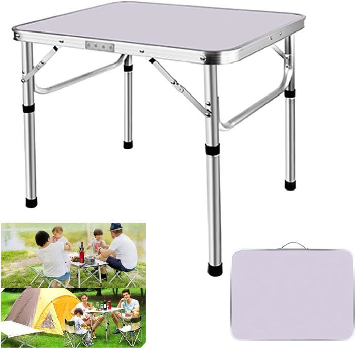 Table de Camping Blanc Aluminium MDF Pliable 60 x 45 x 26/56 cm DAYPLUS Coffre Table de Jardin Réglable Hauteur 2 Niveaux