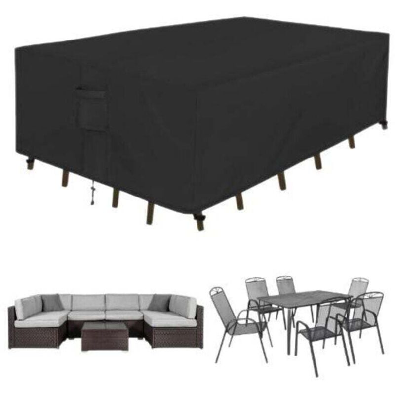 Mrrihand Housses de Meubles de Jardin 250x210x90cm, en Tissu Oxford 600D Imperméable avec Revêtement PU, Housse de Coffre de Table avec évent pour Tables et Chaises, Canapés BSD-008 Noir