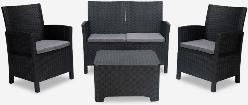 Les Tendances - allibert by keter - Salon de jardin SanRemo Storage 4 places - table basse coffre range-coussins - imitation rotin tresse - grap