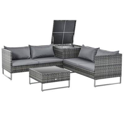 Outsunny Ensemble salon de jardin d'angle 4 places avec table basse et coffre