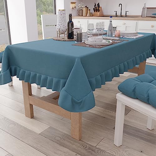PETTI Artigiani Italiani - Nappe à Volants, Nappe de Table, Nappe de Cuisine rectangulaire à Volants, Nappe de Table Couleur Unie en Coton, X12 Places (140 x 240 cm) Aqua