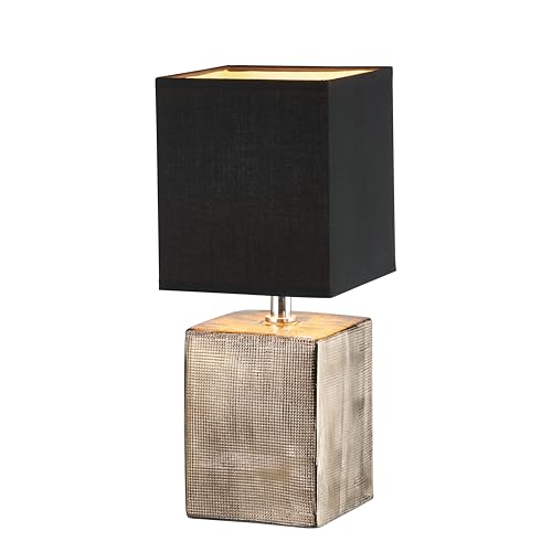 Fischer & Honsel Ouro 50668 Lampe de table, couleur bronze antique, abat-jour en tissu chintz/intérieur doré, L : 14 cm, l : 14 cm, H : 35 cm, avec interrupteur à cordon, 1 ampoule E14 max. 25 W sans