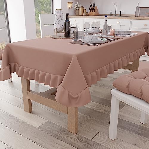 PETTI Artigiani Italiani - Nappe à Volants, Nappe de Table, Nappe de Cuisine rectangulaire à Volants, Nappe de Table Couleur Unie en Coton, X6 Places (140 x 180 cm) Poudre