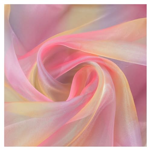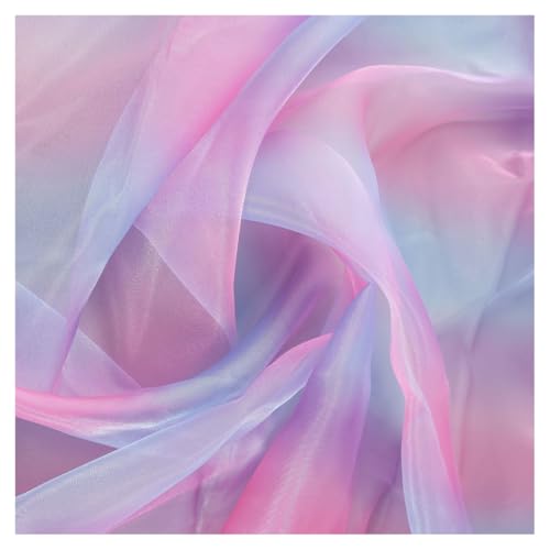AMateschitz Tissu en organza dégradé de couleurs - Tulle arc-en-ciel - Multicolore - Dégradé - Tulle irisé - Tissu décoratif pour robes de mariée, rideaux, chemins de table, costumes, couture DIY,