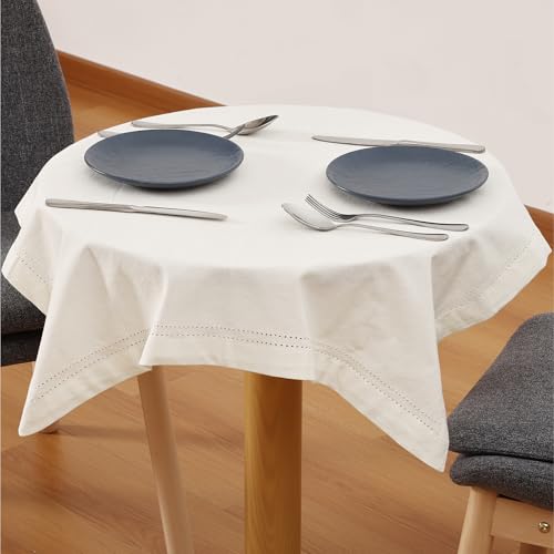 JEMIDI Nappe Carré Tissu - Nappe de Table Carre en Coton 80 x 80 cm - Protection Lavable pour Table Design Double Couture avec Coins en Biais Aspect Lin Blanc