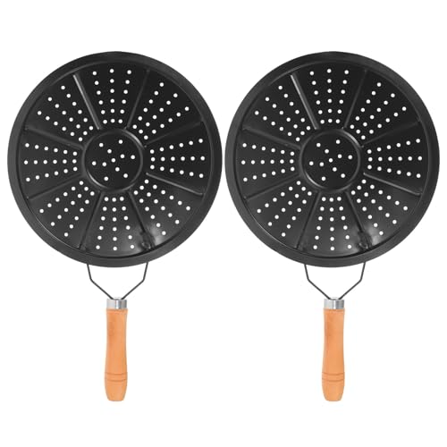 Hemobllo Plaques de Cuisson Isolantes en Fonte 22 CM, Lot de 2 Diffuseurs Manche en Bois, Adaptées pour Plaques Induction et Gaz, Accessoires Thermiques pour Table et Cafetière