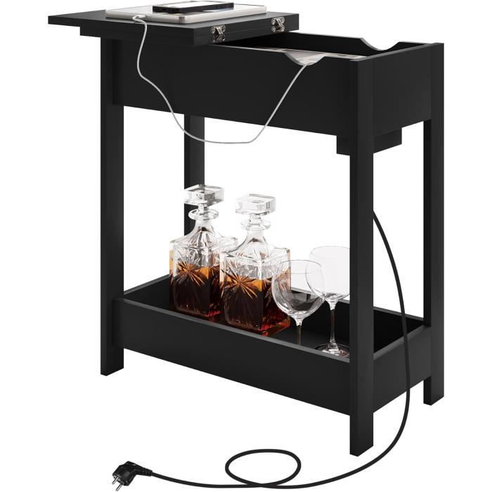 EUGAD Table Basse Table dAppoint avec Station de Charge Table de Chevet avec Prise 2 Ports USB 2 Prises Noir E0AG0080