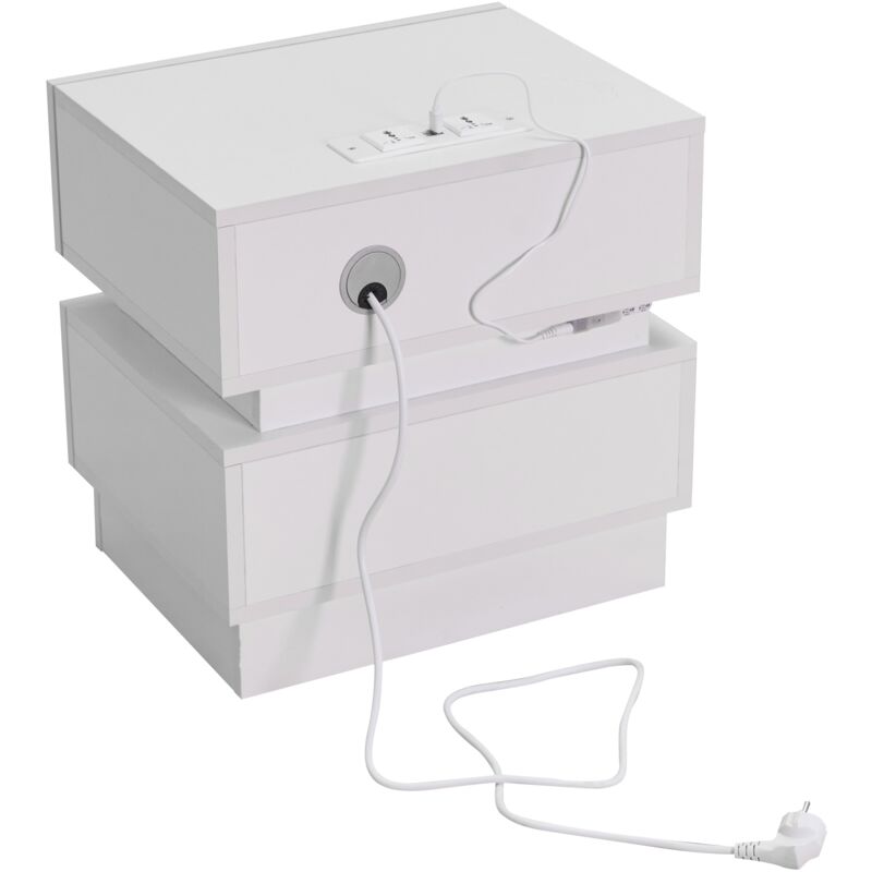 Table de chevet avec tiroir et compartiment ouvret - VIVOLILV - Lot de 2 Table de nuit avec prise et USB - Blanc