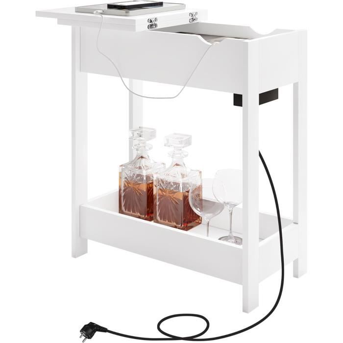 EUGAD Table Basse Table dAppoint avec Station de Charge Table de Chevet avec Prise 2 Ports USB 2 Prises Blanc E0AG0079