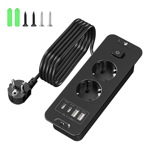Multiprise encastrable avec USB - Prise de Table escamotable avec 2 Ports USB C (20 W) et 2 Ports USB A - Prise encastrable pour Cuisine - pour Bureau, Chambre d'hôtel, Table de Chevet