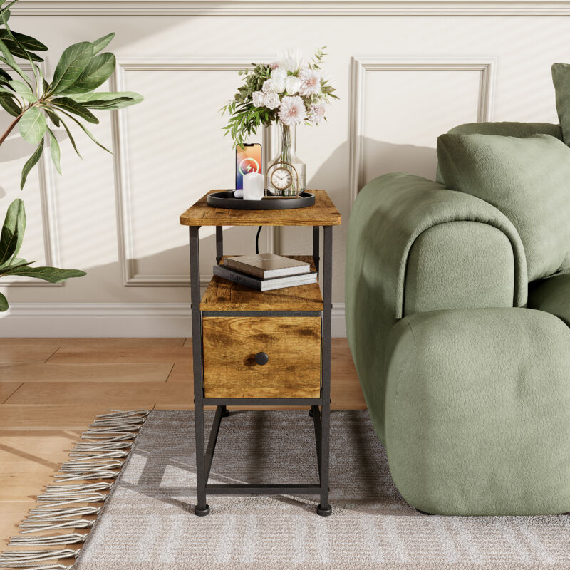 HYTKKBD – Table D'appoint 60x30x62cm,Bout de Canape avec Prise Électrique et Port USB,Side Table avec Tiroir de Rangement,Table de Chevet,Idéale Pour