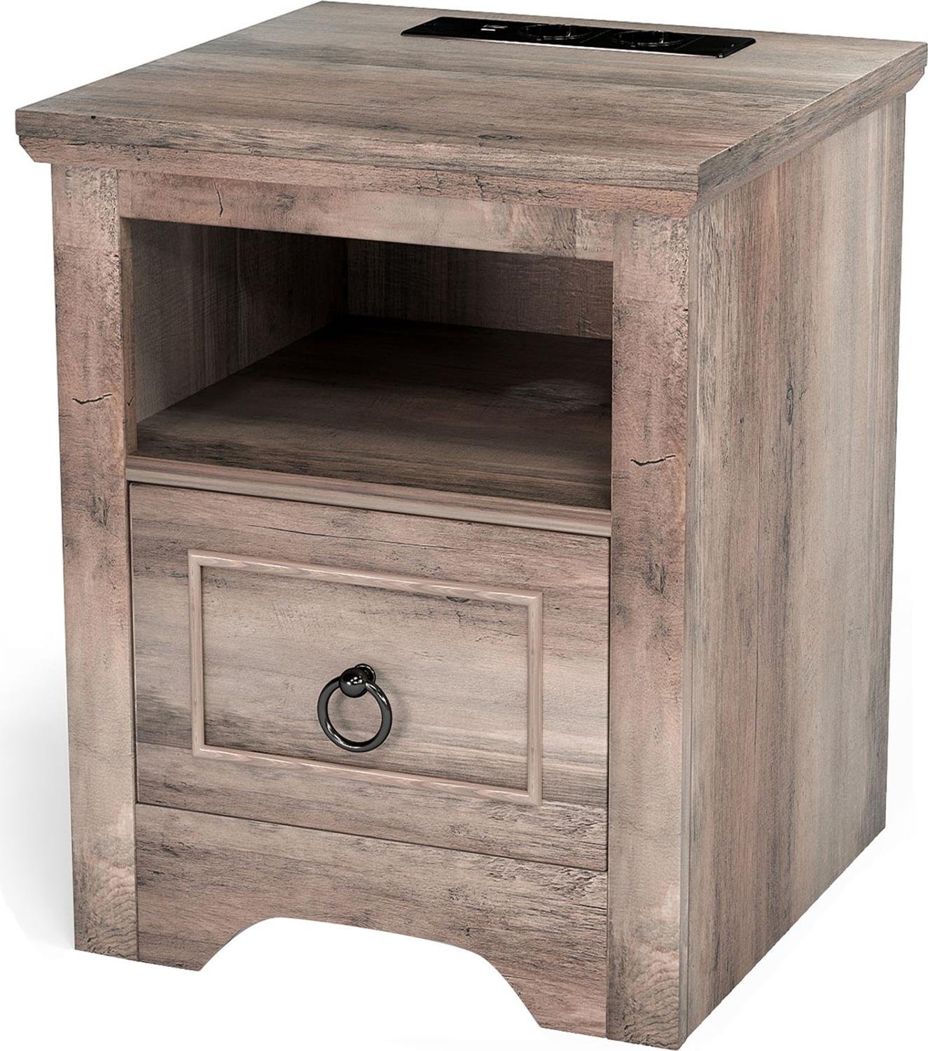 Table de chevet rustique avec station de recharge, bande lumineuse LED, table d'appoint à intensité variable, 1 tiroir, table de chevet, port USB de type C pour chambre à coucher, prise UE