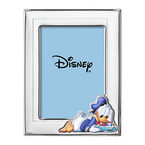 VALENTI & CO. Disney Baby - Donald - Cadre photo en argent avec détails peints en couleurs de table ou table de chevet pour la chambre de bébé parfaite comme idée cadeau baptême ou anniversaire