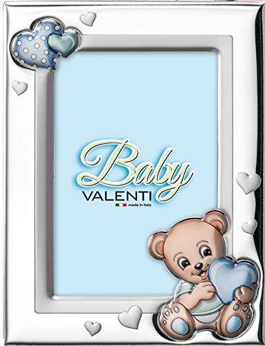 Valenti&Co – Cadre photo en argent avec détails en forme d'ourson peint à la couleur pour table ou table de chevet pour chambre d'enfant, idéal comme idée cadeau de baptême ou d'anniversaire