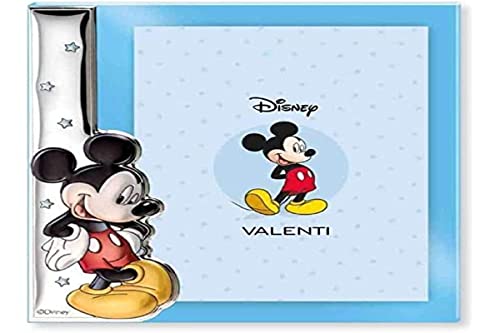 VALENTI & CO. Disney Baby - Mickey Mouse - Cadre photo en argent et applications 3D en couleur pour table ou table de chevet pour chambre d'enfant, parfait comme idée cadeau de baptême ou