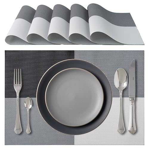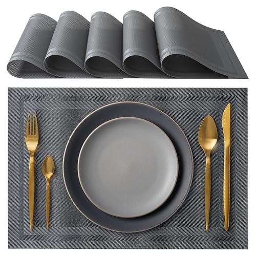 IPEA Sets de Table élégants 45 x 30 cm pour Dîner, Déjeuner, Petit Déjeuner - 6 unités - Set de Table Lavable, Résistant au Chaleur, antidérapant et Anti-Taches Tables Cuisine Salle à Manger - Gris