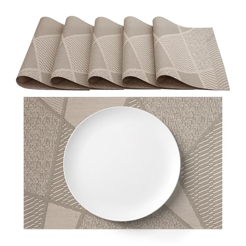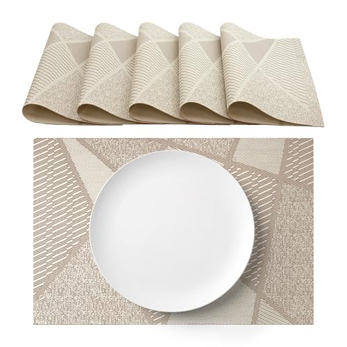 IPEA Sets de Table élégants 45 x 30 cm pour Dîner, Déjeuner, Petit Déjeuner - 6 unités - Set de Table Lavable, Résistant au Chaleur, antidérapant et Anti-Taches Tables Cuisine Salle à Manger - Beige