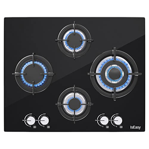 IsEasy Plaque Gaz 4 Feux Inox, Plaque de Cuisson Gaz 4 feux Encastrable, Table de cuisson 60cm, Gazs Ville et Bouteille