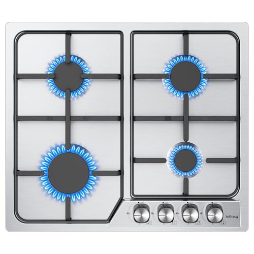 Plaque Gaz 4 Feuxs Inox, IsEasy Plaque de Cuisson Gaz 4 Feux Encastrable, Table Gazs 60cm, Table de Cuisson 7200W, Gazs Ville et Bouteille