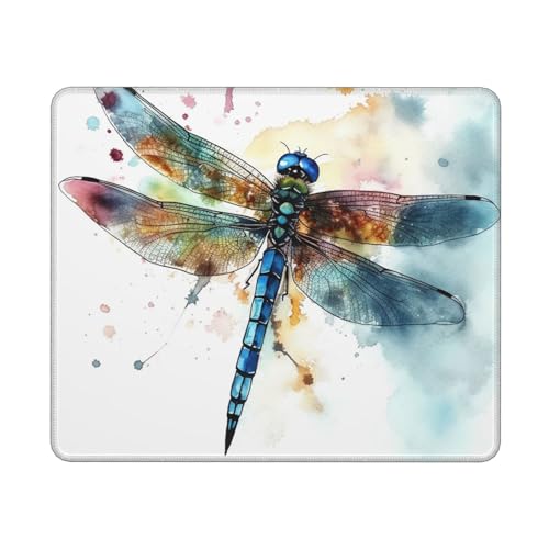 Tapis De Souris De Jeu Libellule À L'Aquarelle Lavable Tapis De Bureau Confort Base De Table pour Gaming Pc Clavier 10X12In