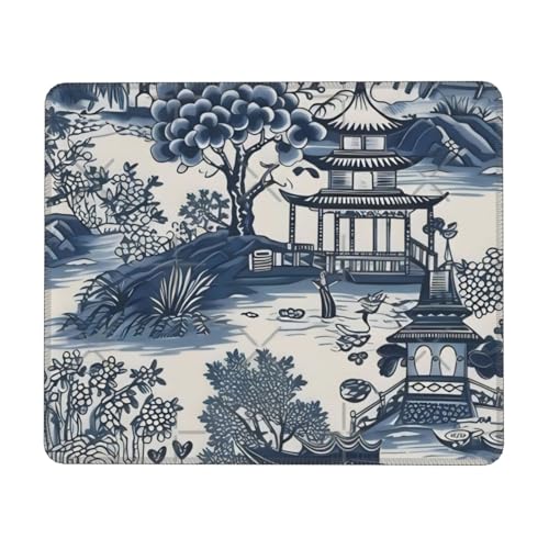 Tapis De Bureau Chinoiserie Bleu Et Blanc Style Chinois Antidérapante Tapis Souris Étanche Base De Table pour Gaming Pc Maison 10X12In