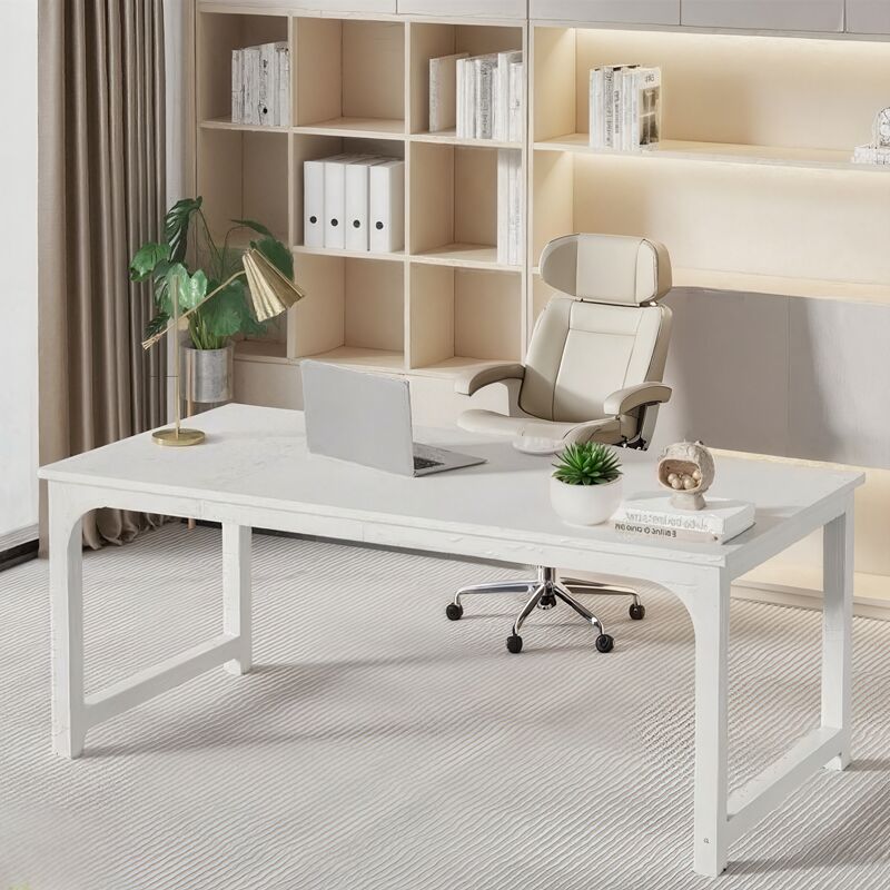 Bureau d'ordinateur, Table de Bureau Informatique Gaming-Travail-d'Étude, 200 x 70 x 75 cm, Blanc