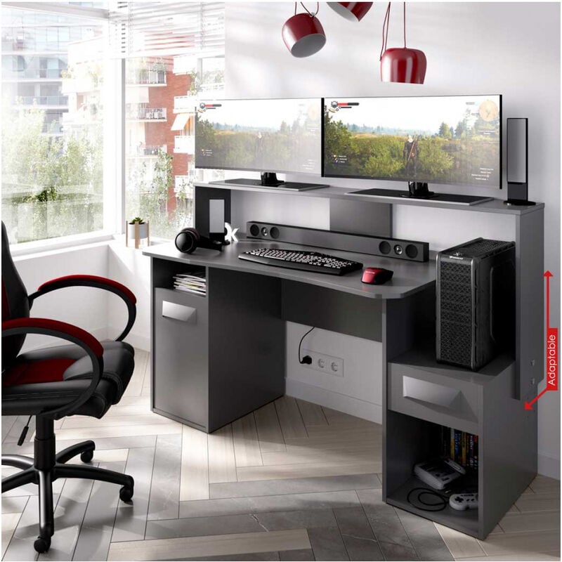 TOOQ DB1402TN-B Support de Table Gaming pour 2 Pantalons de 17" à 27" Noir