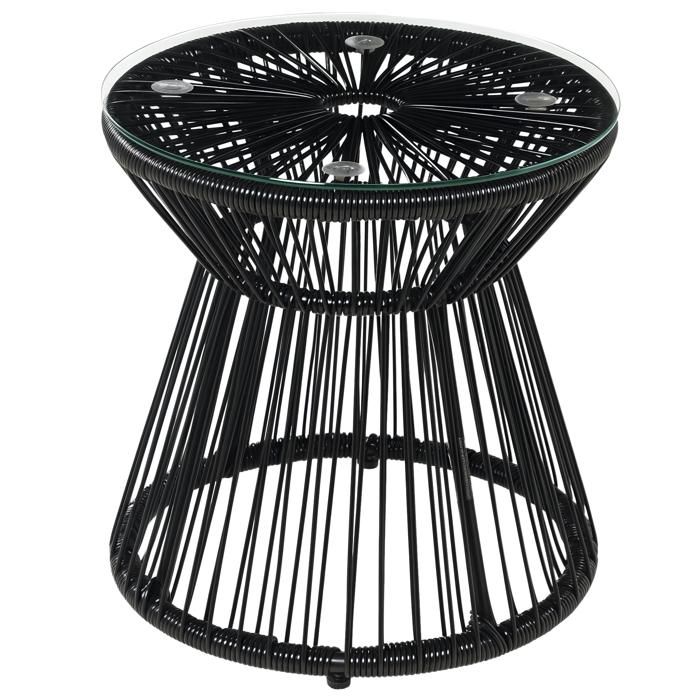 vidaXL Table de jardin avec plateau en verre noir 55x55x37 cm résine tressée 365